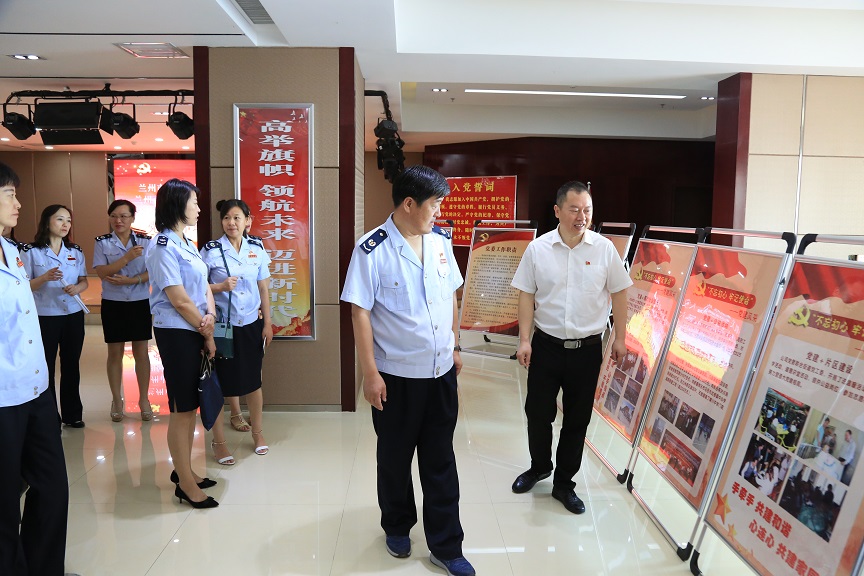 八月1日早上九點,蘭州市稅務(wù)局機關(guān)第八黨支部和公司機關(guān)黨支部一行20余人來到西固區(qū)稅務(wù)局參觀黨建長廊和第六支部的黨建陣地。參觀過程中,詳細(xì)介紹了西固稅務(wù)自機構(gòu)改革以來在黨建工作方面取得的成就、亮點和品牌文化,實地觀摩了支部黨建陣地建設(shè),查閱了學(xué)習(xí)基礎(chǔ)臺賬及相關(guān)資料,了解了黨建融合企業(yè)、黨員特色隊伍建設(shè)等新思路、新做法。參觀結(jié)束后,大家一致認(rèn)為,西固稅務(wù)黨建文化陣地特色濃,黨建服務(wù)品牌標(biāo)識亮,讓參觀人員內(nèi)心既受到震撼,思路又進一步得到拓寬。