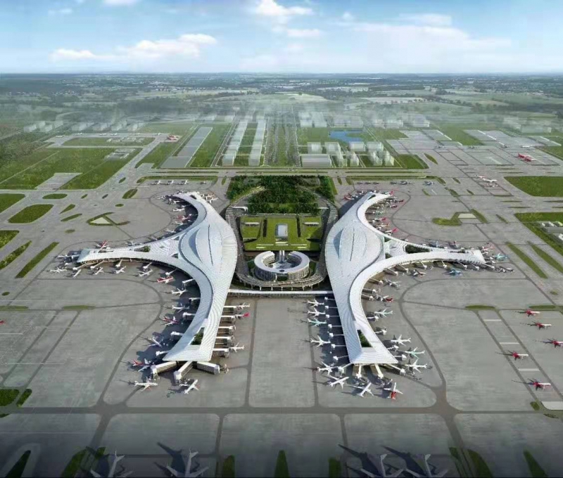 成都天府國際機場一期工程飛行區(qū)等級為4F,建設“兩縱一橫”共3條跑道、60萬平方米的航站樓、246個停機位以及相應的空管工程、供油工程、航空公司基地工程等設施。