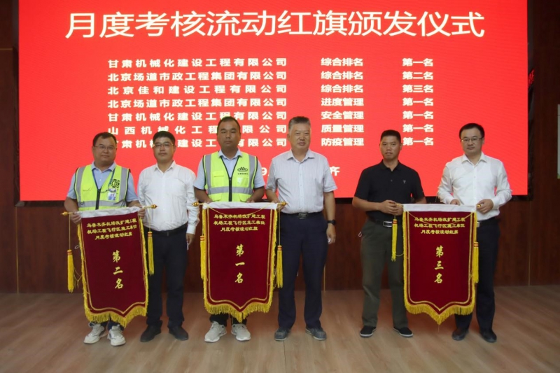 此次會議對施工單位八月份的相關(guān)工作進(jìn)行了綜合考核,我司烏魯木齊機(jī)場項(xiàng)目經(jīng)理部在8家施工單位評比中獲得綜合第一名、安全第一名、防疫第一名的好成績,得到了業(yè)主方、擴(kuò)建指揮部及監(jiān)理單位的一致認(rèn)可。同時會議對九月份全場飛行區(qū)工程的相關(guān)工作進(jìn)行了部署,下達(dá)了各標(biāo)段施工任務(wù)。