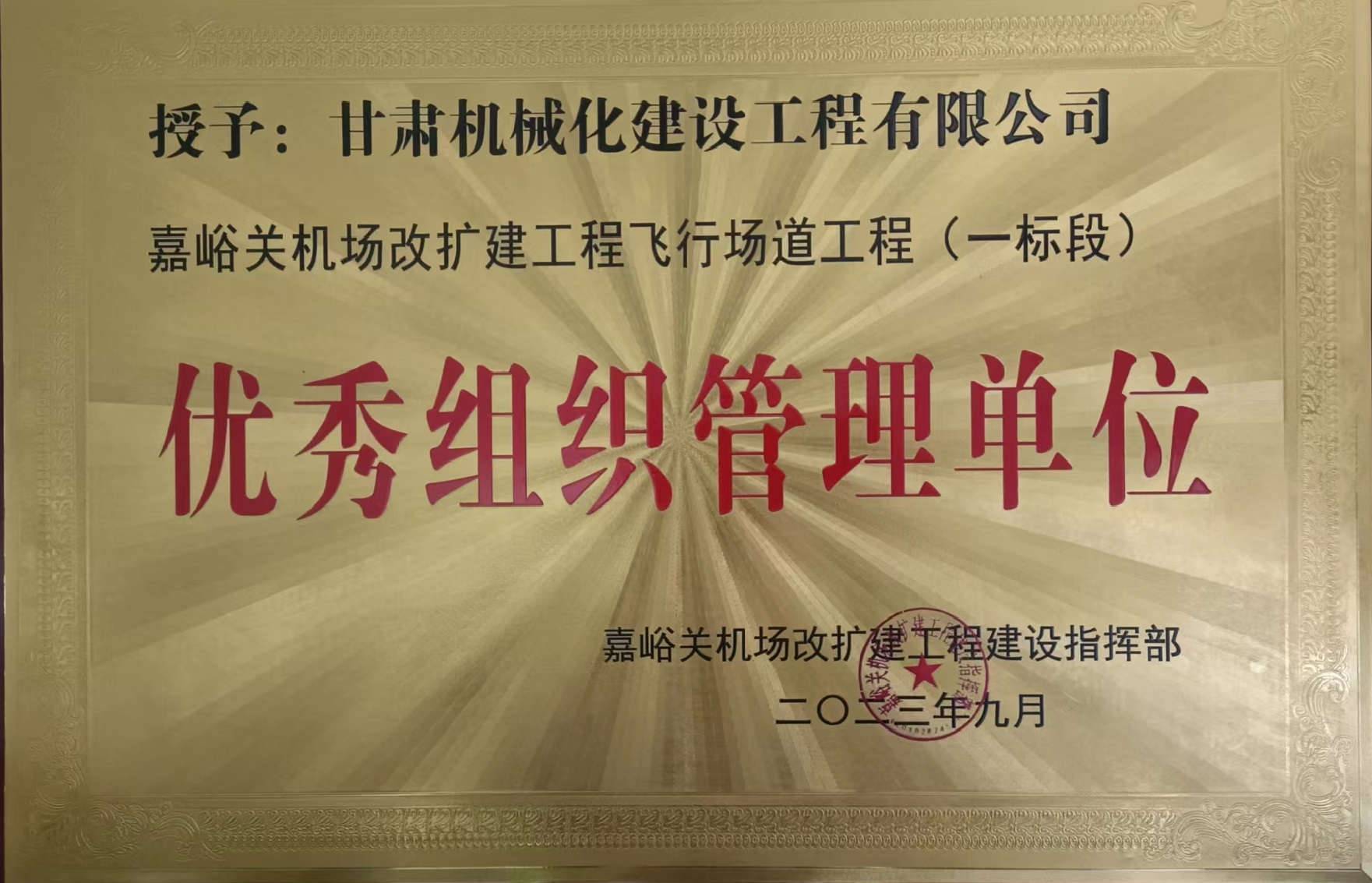 近日,嘉峪關(guān)機(jī)場(chǎng)改擴(kuò)建工程建設(shè)指揮部對(duì)在嘉峪關(guān)酒泉機(jī)場(chǎng)改擴(kuò)建工程中作出重要貢獻(xiàn)的參建單位給予通報(bào)表彰,公司榮獲“嘉峪關(guān)機(jī)場(chǎng)改擴(kuò)建工程飛行場(chǎng)道工程 (一標(biāo)段)優(yōu)秀組織管理單位”稱(chēng)號(hào),徐栓紅同志被授予“優(yōu)秀技術(shù)負(fù)責(zé)人榮譽(yù)稱(chēng)號(hào)”。?