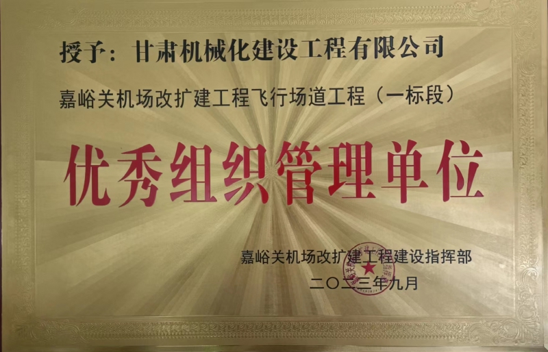 嘉峪關(guān)機場(chǎng)改擴建工程飛行場(chǎng)道工程 (一標段)優(yōu)秀組織管理單位