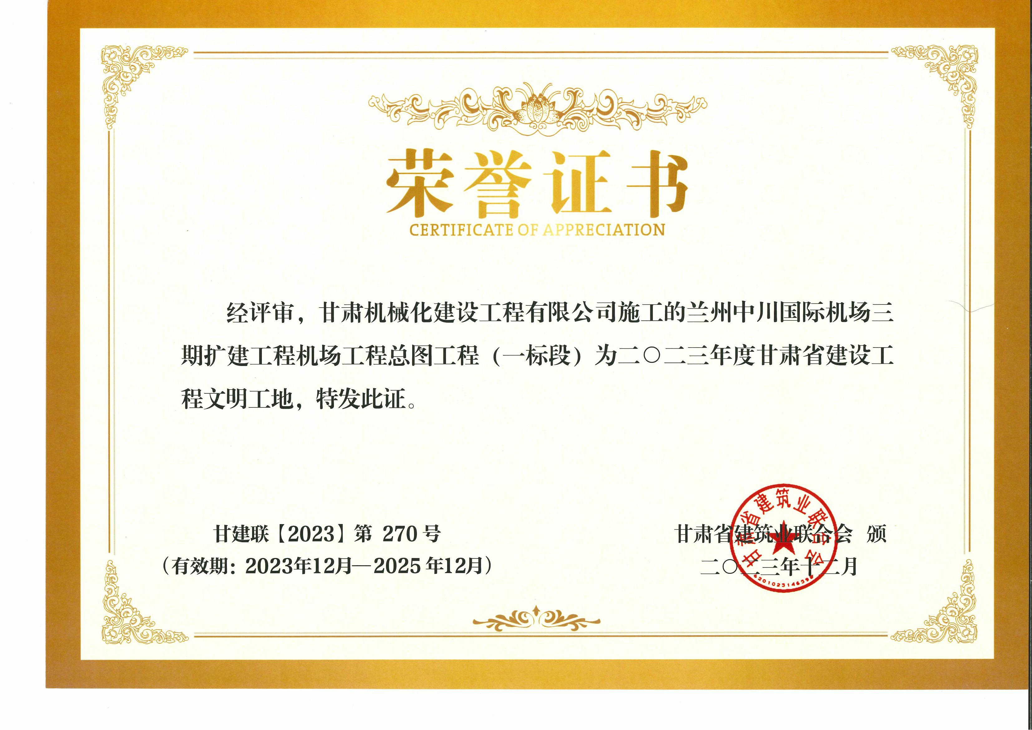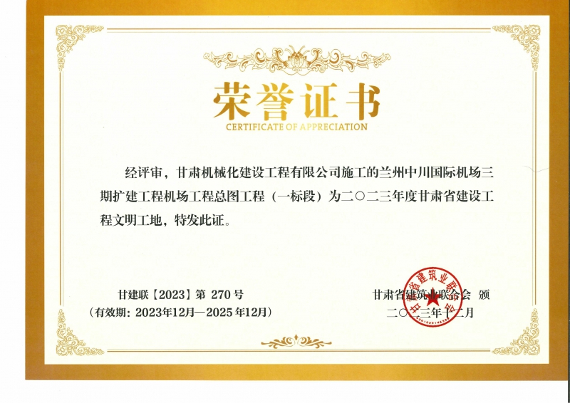 2023年度甘肅省建設工程文明工地 蘭州中川國際機場(chǎng)二期擴建工程機場(chǎng)工程總圖工程 (一標段)